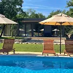 A microwave, an electric kettle, and a refrigerator are standard in a kitchen. The villa has a terrace to relax on after a busy day, along with a swimming pool.